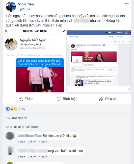 Ngoài trang cá nhân Minh Tiệp, nam MC còn sử dụng thêm một tài khoản khác để kinh doanh nhưng cũng bị tấn công. "Nếu vài ngày tới tình trạng này không chấm dứt, tôi sẽ khóa Facebook chứ không biết làm sao", MC này bộc bạch.