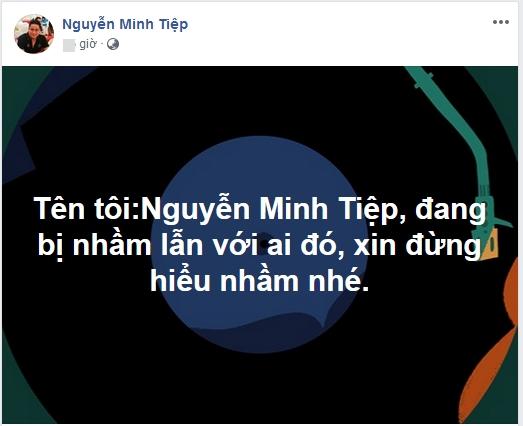 Tôi là Nguyễn Minh Tiệp diễn viên chứ không phải là Nguyễn Minh Tiệp mà ai đó đang nghĩ và làm một công việc gì đó. Xin cảm ơn mọi người", diễn viên Minh Tiệp cho hay.
