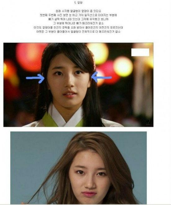 Cuộc tranh luận nổ ra khi 1 bài đăng trên mạng có tựa "Suzy chắc chắn cũng đã qua chỉnh sửa gương mặt" kèm theo đó là hàng loạt bức ảnh làm bằng chứng khẳng định rằng Suzy đã từng trải qua phẫu thuật thẩm mỹ. Các hình ảnh đăng tải lên sau đó đã được xoá đi nhưng các bạn vẫn có thể xem ở phía dưới đây.