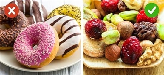 Nếu thích ăn vặt, bạn nên lựa chọn hoa quả tươi hoặc trái cây và hạt sấy khô thay vì ăn bánh ngọt hay kẹo.Với cách ăn này, bạn có thể loại bỏ được lượng đường dư thừa và chất béo trong chế độ ăn uống hằng ngày mà vẫn thỏa mãn sở thích ăn vặt của bản thân.