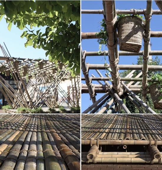 Ngôi nhà được xây dựng bằng cách sắp xếp nhiều lớp tre đan xen và chồng lên nhau.