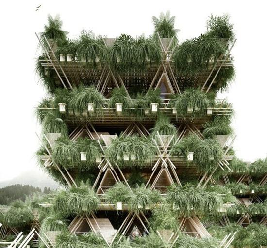 Nhiều lớp như vậy chồng lên nhau sẽ tạo thành một khối cấu trúc tương tự một tòa nhà chung cư. Mỗi “căn hộ” sẽ cao khoảng 4 m. Nhóm thiết kế chia sẻ: “Cảm giác một thành phố đầy sức sống xung quanh và được hòa vào thiên nhiên chính là động lực giúp chúng tôi thực hiện dự án này”.