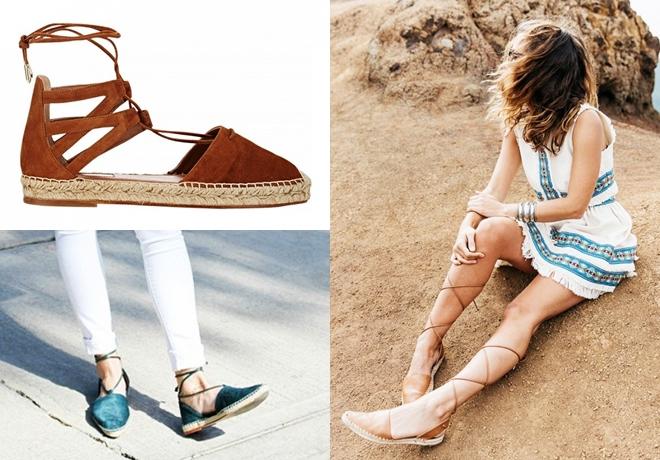 Sandal cói đế bệt được thiết kế dành riêng cho mùa hè bởi đặc tính mát, nhẹ. Khi biến tấu, cách điệu với dây buộc thì những đôi dép đế cói trở nên phá cách hơn hẳn. Chính một chút “dây dợ” này đem lại vẻ mới mẻ cũng như trời trang hơn cho các nàng trong những ngày hè nóng nực.