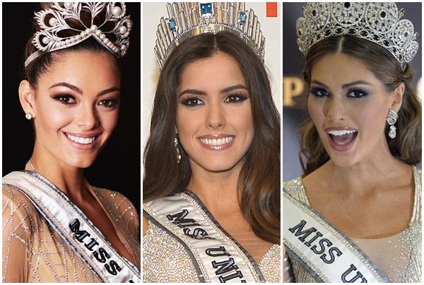 Các cô gái dự thi Miss Universe thường được make-up theo chuẩn: Nền nâu, mắt được đánh đậm màu nâu đồng - nhấn dày phần đuôi, kết hợp với son nude đánh bóng để tạo nên sự lôi cuốn.