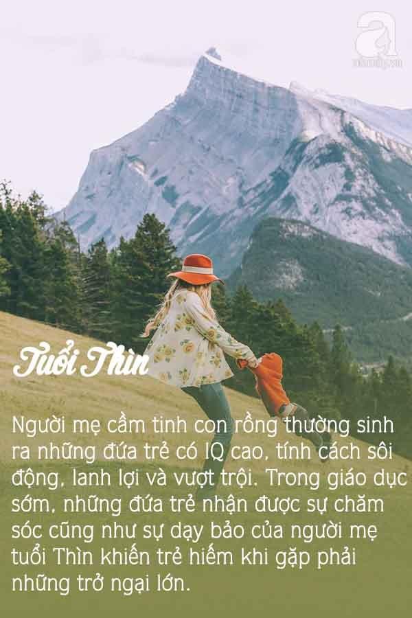 Người mẹ tuổi Thìn là người vô cùng mạnh mẽ, quyết liệt, cho dù có bận rộn với sự nghiệp thì cũng luôn dành ra thời gian ở bên con cái để quan tâm và dạy dỗ. Người mẹ cầm tinh con rồng thường sinh ra những đứa trẻ có IQ cao, tính cách sôi động, lanh lợi và vượt trội.