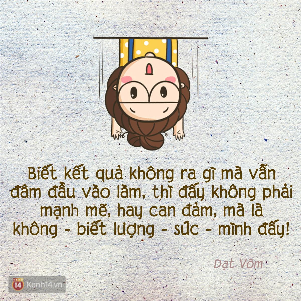 1. Tất nhiên là không! Biết kết quả không ra gì mà vẫn đâm đầu làm, thì đấy không phải mạnh mẽ, hay can đảm, mà là không - biết lượng - sức - mình đấy! (Dạt Vòm)