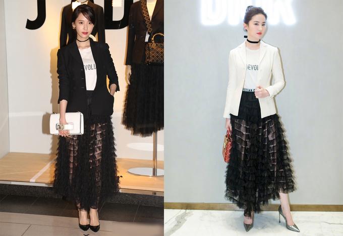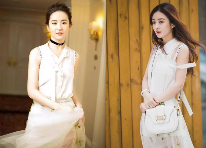 Triệu Lệ Dĩnh và Lưu Diệc Phi cũng thường xuyên đụng độ váy áo. Cả 2 có phong cách tương đồng nên cũng khó lòng phân thắng bại.