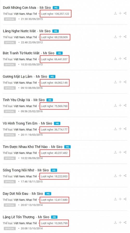 Sự đồng cảm mà khán giả cảm nhận được trong âm nhạc của Mr Siro đã khiến các ca khúc của anh luôn đạt thứ hạng cao trên các BXH và có lượt nghe ngất ngưởng.