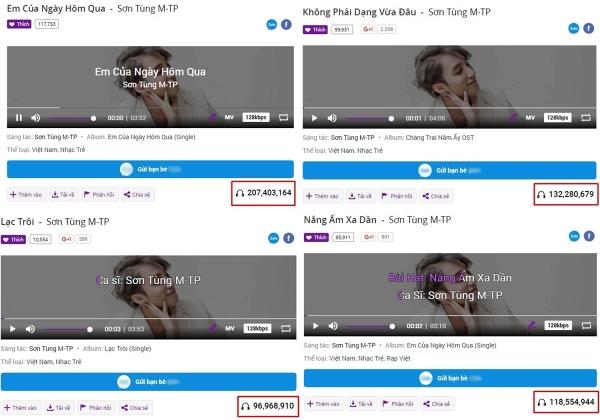 Có cần phải nói thêm nữa không nhỉ khi sự nghiệp của Sơn Tùng từ trước đến nay toàn là những bản hit (trăm) triệu view? Nam thần, đẹp trai, hit khủng, bộ sưu tập view MV khủng, ở đâu mà cái tên Sơn Tùng M-TP không xuất hiện cơ chứ!