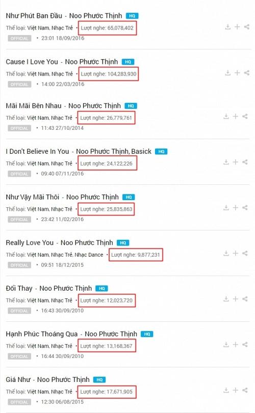 Sở hữu gia tài hit đồ sộ với nhiều thể loại đa dạng từ ballad cho đến dance, tất nhiên không thể thiếu cái tên Noo Phước Thịnh trong danh sách này rồi! Vị HLV Giọng hát Việt mùa này rất nhiều lần có những cú “đánh úp” như Thương mấy cũng là người dưng, tung bài hát mới mà chẳng báo trước nhưng lại nhẹ nhàng leo top các BXH ngay sau đó.