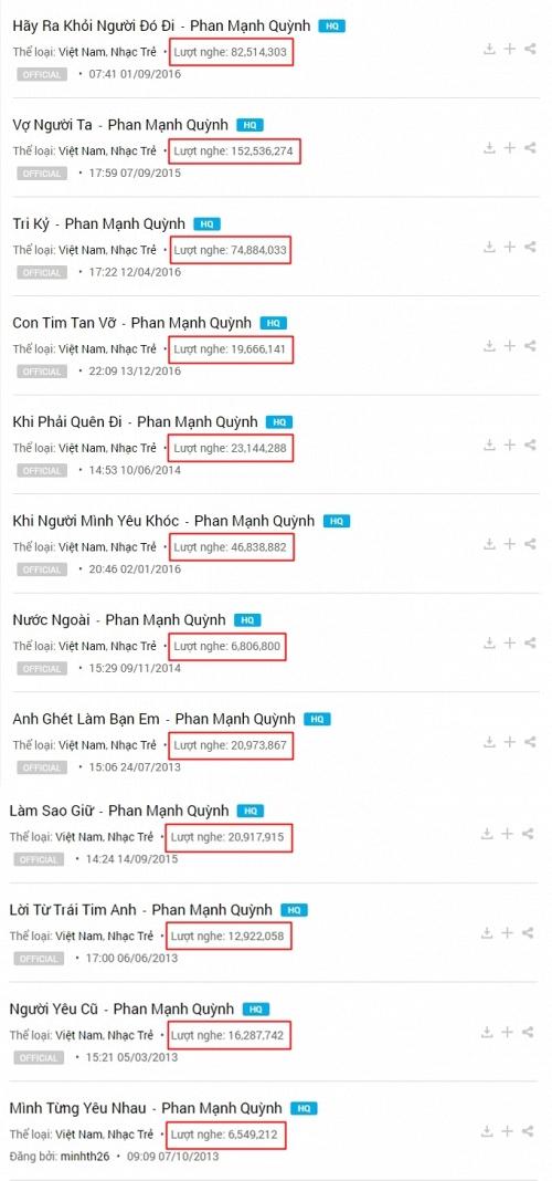 Không cần PR rầm rộ, các ca khúc của Phan Mạnh Quỳnh luôn đạt được những con số ấn tượng.