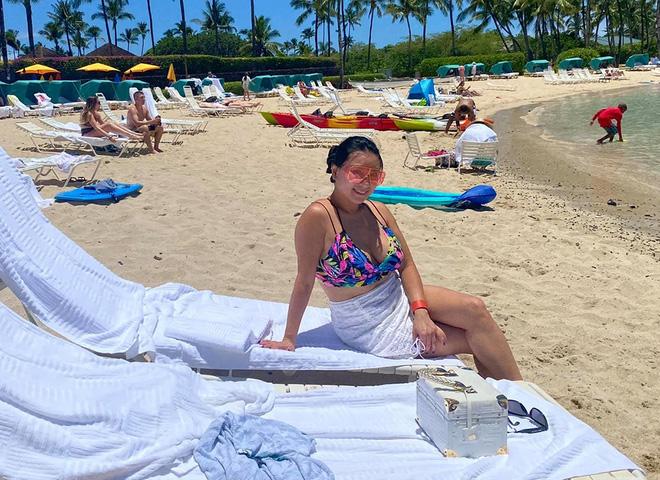 Sau sinh, cô chăm chỉ tập gym để lấy lại vóc dáng nhưng vẫn không thể về body thời con gái. Người đẹp vẫn tăng khoảng 10 kg so với trước kia.