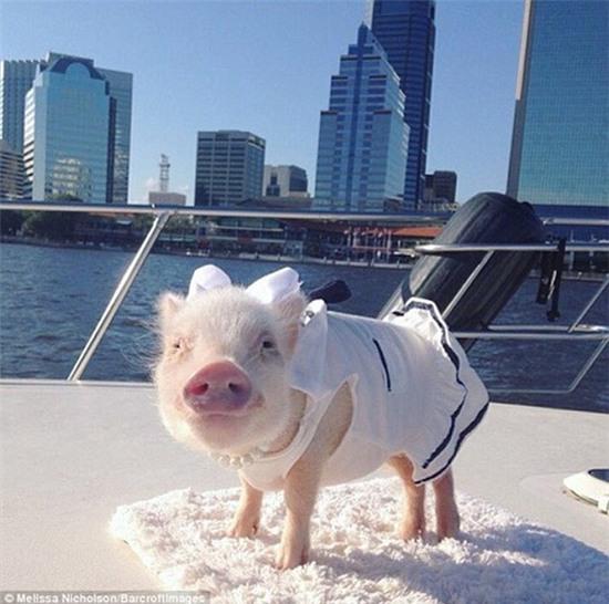 Một chú lợn với trang phục bắt mắt trên du thuyền.