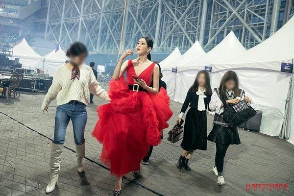 Chiếc váy đỏ khiến cô càng thêm nổi bật.