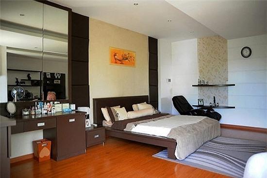 Phòng ngủ rộng rãi, thanh lịch sử dụng vật liệu gỗ làm chủ đạo.