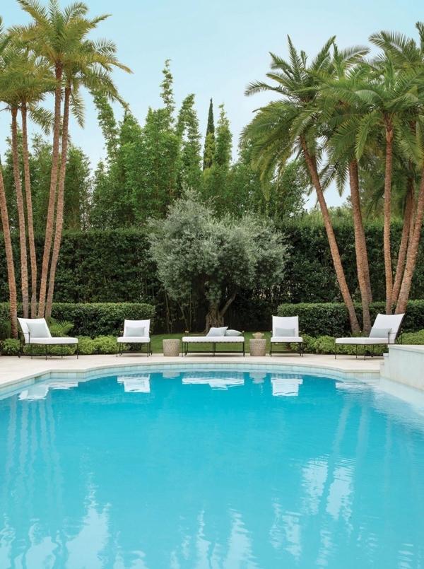 Nội thất có điểm nhấn là nhiều cây xanh. Đây là thiết kế vừa lựa chọn đúng cho lối sống năng động của cô nàng, vừa làm nổi bật khuôn viên rộng lớn. Bên cạnh đó, biệt thự cũng có hồ bơi có mái vòm cùng một hàng cây ô liu xanh mướt.