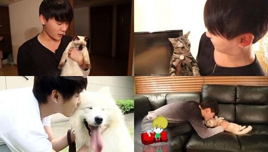 Jo Kwon bên hai cún cưng tên là Gaga và Lucky