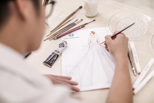 Là nhà thiết kế được nhiều mỹ nhân showbiz tin tưởng tìm đến ngày trọng đại, không có gì lạ khi lần này Chung Thanh Phong cũng được Tú Anh đặt trọn niềm tin. Nhà mốt 8X cho hay lần đầu tiên nhìn thấy bản sketch cũng như được tư vấn về chất liệu, Tú Anh rất thích thú và quyết định đây sẽ là chiếc váy cưới trong mơ.