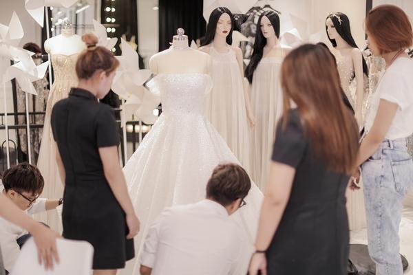 Mất thời gian 1 tháng liên tục để hoàn thành mẫu váy cưới với bề mặt là chất liệu lấp lánh nổi bật, bộ cánh của Tú Anh được nhiều người đánh giá "ngất ngây lòng người vì quá đỗi xa hoa, kiều diễm".