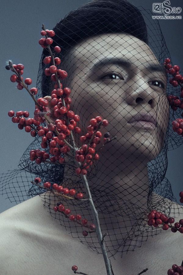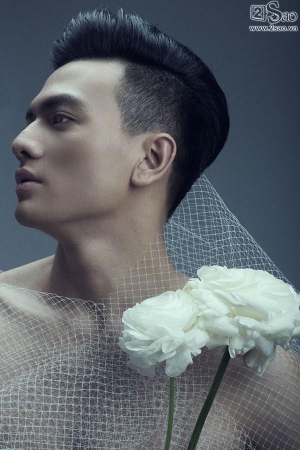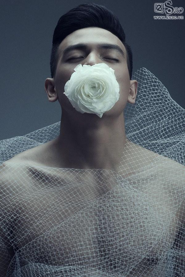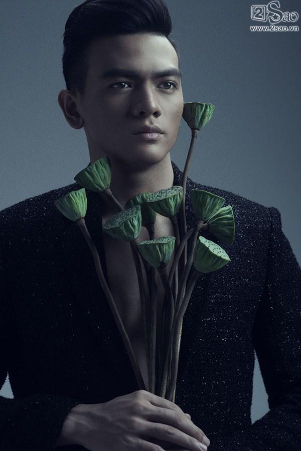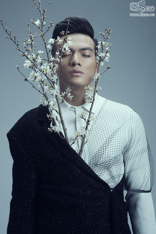 Dù có xương mặt góc cạnh nhưng những đường nét trên gương mặt của Lê Xuân Tiền vẫn mềm mại, thanh Rũ bỏ sự hào nhoáng của trang phục, chàng thơ của nhà thiết kế Đỗ Mạnh Cường mang đến khái niệm về cái đẹp độc đáo hơn qua những cung bậc cảm xúc sâu lắng cùng sự chuyển động nhẹ nhàng, linh hoạt của cơ mặt.