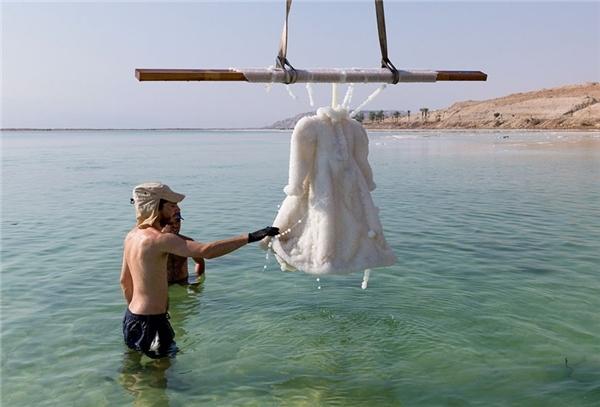 Một họa sĩ người Israel – Sigalit Landau, đã nảy ra một ý tưởng táo bạo khi quyết định ngâm một chiếc áo choàng dài vào trong Biển Chết. Chiếc áo choàng bắt đầu được ngâm toàn phần trong nước Biển Chết từ năm 2014 đến nay đã được vớt lên và mọi người không khỏi sững sờ khi thấy kết quả.