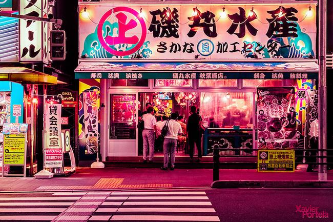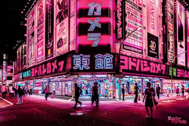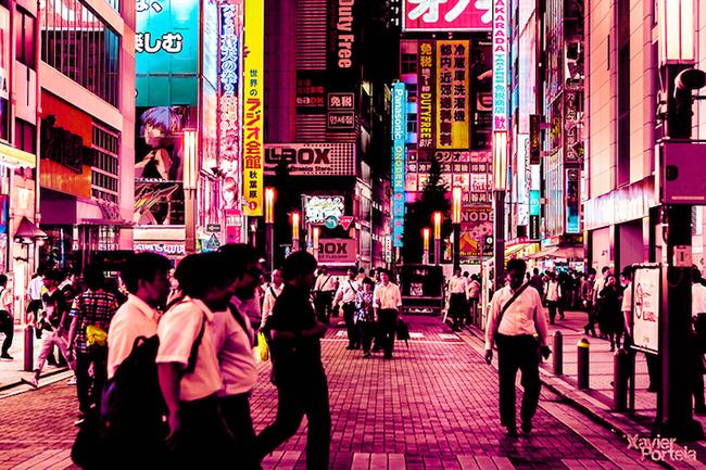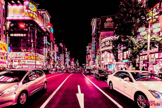 Nhật Bản thường hiện lên trong tâm trí nhiều người với hình ảnh của những khu làng cổ trầm mặc và yên ả. Thế nhưng, khi màn đêm buông xuống cũng là lúc mọi góc phố bắt đầu chuyển mình thay đổi. Đèn bảng hiệu được bật nhiều hơn, người dân đi lại cũng đông đúc hơn, tâm trạng dường như cũng có đôi phần hồ hởi hơn sau một ngày làm việc tất bật. Ấn tượng với vẻ đẹp cuốn hút này, nhiếp ảnh gia người Bỉ Xavier Portela cũng đã nhanh chóng chụp một bộ ảnh Nhật Bản về đêm. Dưới sắc hồng lung linh, dường như thành phồ Tokyo lại e ấp và đáng yêu như thiếu nữ mới lớn.
