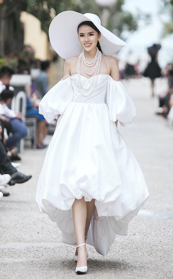 Trong khi đó, ở vị trí kết màn cho bộ sưu tập đầu tiên, Hoa hậu Việt Nam 2014 Kỳ Duyên lại khiến nhiều người bất ngờ. Với bộ váy màu trắng kết hợp mũ rộng vành, Kỳ Duyên sải bước nhẹ nhàng, thanh thoát và cuốn hút. Thời gian gần đây, cô bắt đầu tham gia nhiều show diễn thời trang hơn ở những vị trí “đinh”.