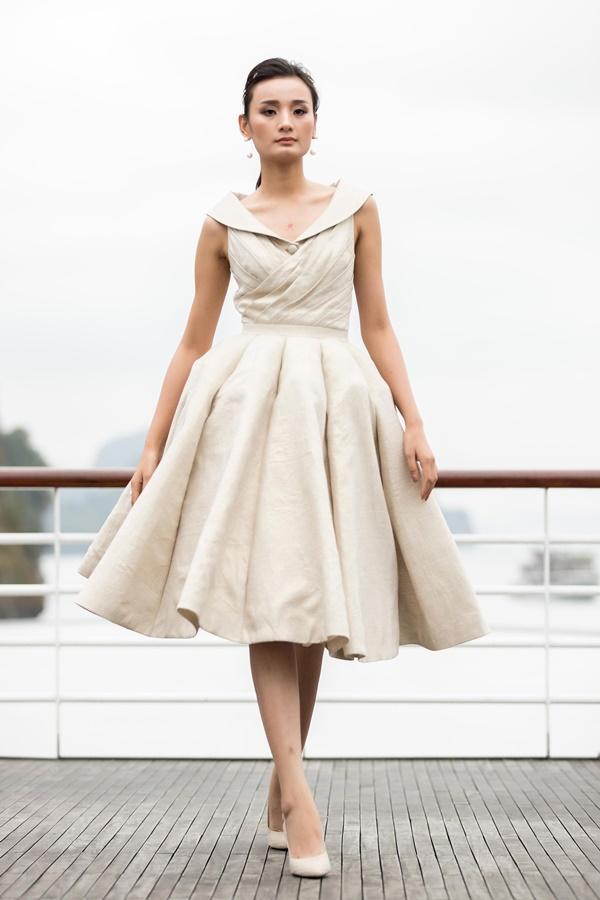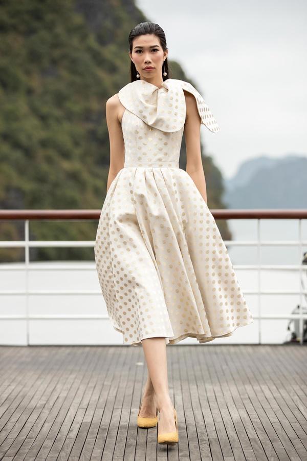 Bộ sưu tập chủ yếu sử dụng tông màu trắng -kem - vàng nhẹ nhàng tôn lên nét quyến rũ của người phụ nữ