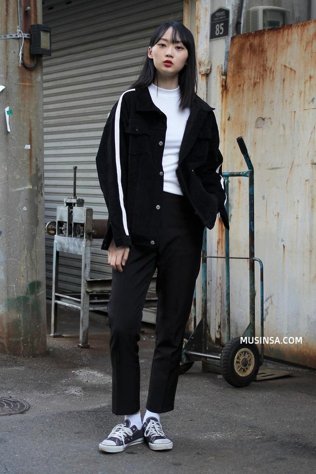 Chiếc quần tây đen sẽ chẳng còn "công sở" chút nào khi được mix cùng một chiếc jacket khỏe khoắn và giày