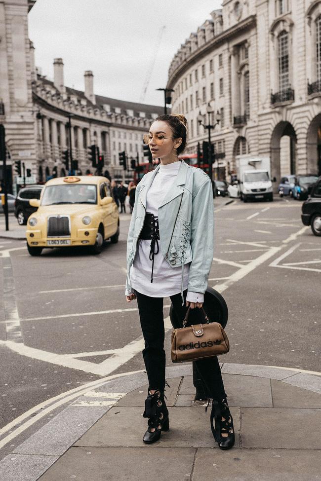 Cô nàng này đã nhanh chóng áp dụng xu hướng diện corset ngoài áo phông để tạo điểm nhấn cho