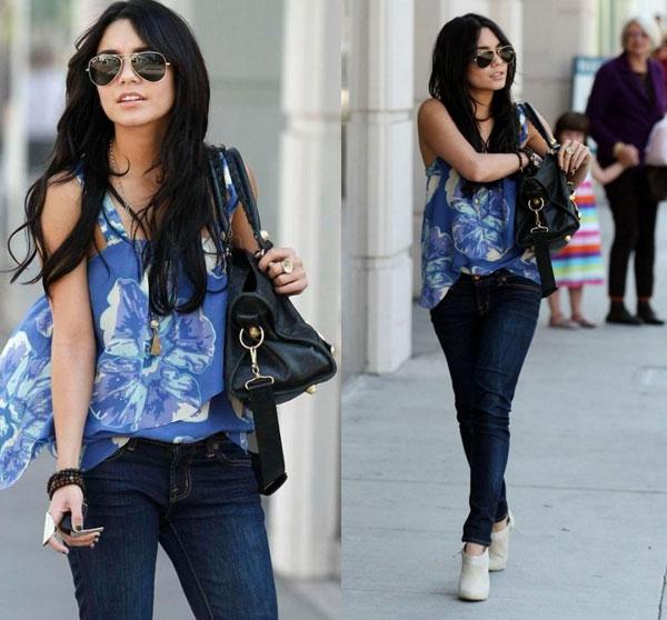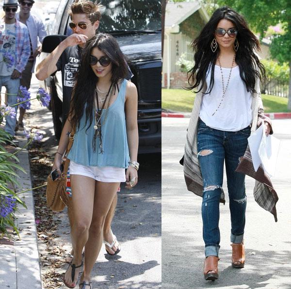 Từ những chiếc quần yếm, áo sơ mi thụng, áo phông, quần short, váy hoa... đều được Vanessa Hudgens phố hợp một cách ăn ý, tinh tế và rất sành điệu. Những bạn gái tuổi teen có thể học theo phong cách của Vanessa Hudgens cho những ngày đi chơi, dạo phố...