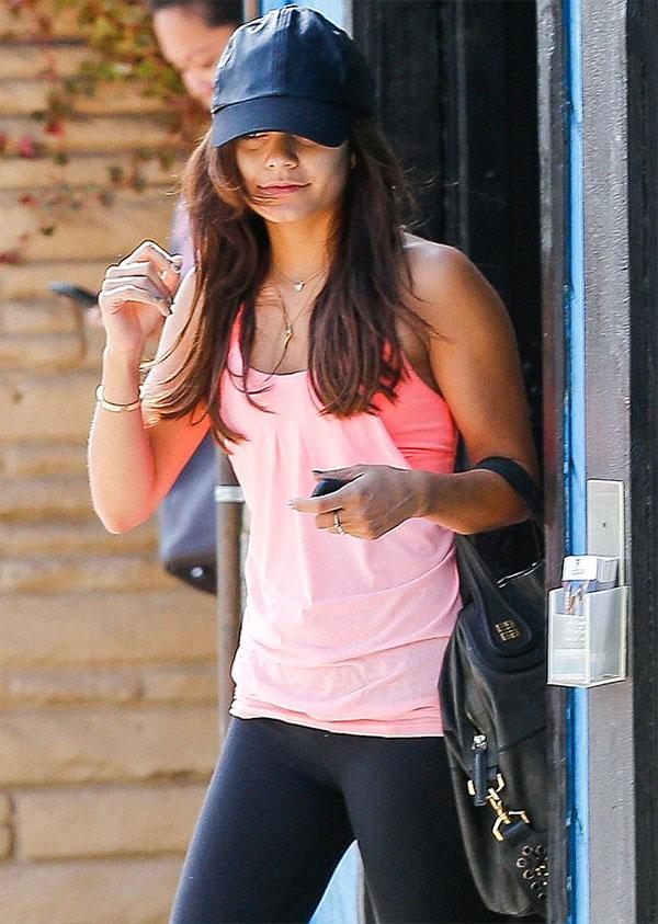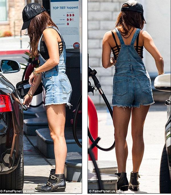Vanessa Hudgens gợi cảm mặc quần yếm và áo hở bên trong.