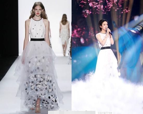 Bộ váy mà Triệu Lệ Dĩnh mặc trong Đêm hội weibo tuy có thiết kế đơn giản nhưng đã