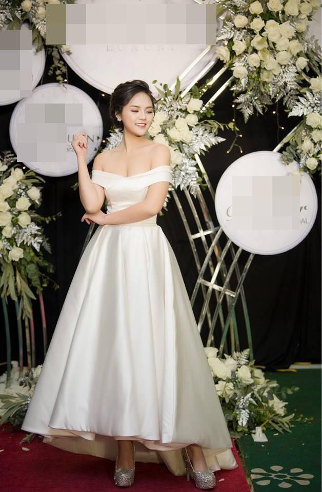 Người đẹp khoe vòng 1 căng đầy trong thiết kế đầm trắng trễ vai.