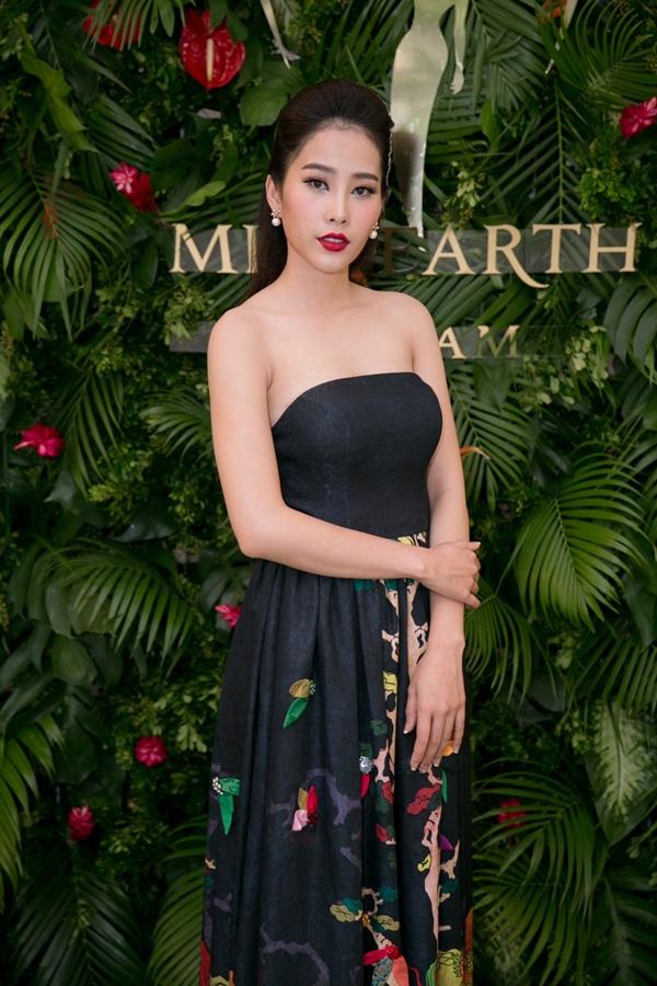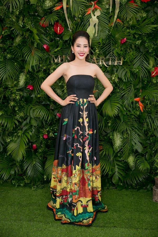 Chiếc đầm dạ hội lấy cảm hứng từ muôn vàn vì sao lấp lánh trong đêm. Được chế tác đính kết từ 5 nghệ nhân đính kết suốt gần 2 tháng liền để hoàn thiện. Phần váy gần như tất cả đều là các hạt cườm, đá, pha lê trải trên nền lưới đen tựa như những ánh sáng li ti trên bầu trời đêm, phần cổ lấy cảm hứng từ chiếc áo yếm của người phụ nữ Việt xưa, e ấp nhưng vẫn gợi cảm, thanh thoát. Hiệu ứng khi đi trên sân khấu sẽ đem đến sự tỏa sáng, mang nét đẹp cổ điển tinh tế và sang trọng cho bộ trang phục.