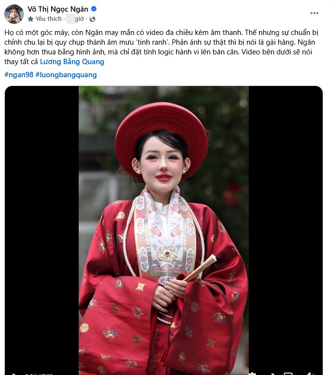 Tuy nhiên, chưa chịu dừng lại mới nhất, Ngân 98 tiếp tục lên tiếng trên trang cá nhân. Người đẹp tung clip tường thuật kèm dòng trạng thái: "Họ có một góc máy, còn Ngân may mắn có video đa chiều kèm âm thanh. Thế nhưng sự chuẩn bị chỉnh chu lại bị quy chụp thành âm mưu ‘tinh ranh’. Phản ánh sự thật thì bị nói là gài hàng. Ngân không hơn thua bằng hình ảnh, mà chỉ đặt tính logic hành vi lên bàn cân."
