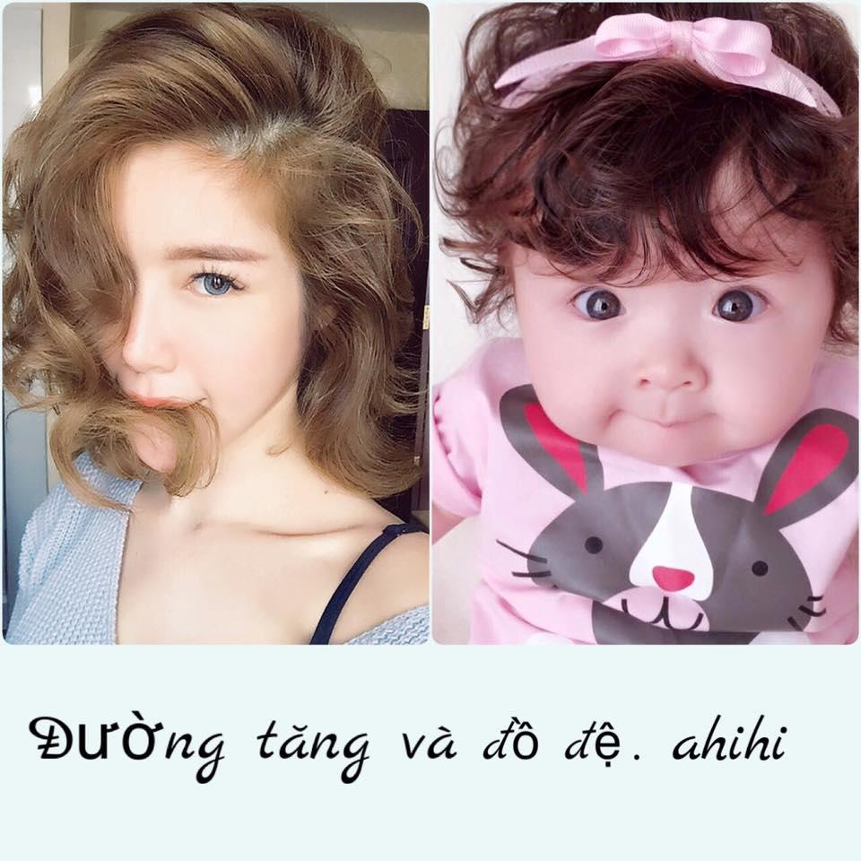 Sẵn niềm cảm hứng, nữ diễn viên Khát vọng thượng lưu sau đó còn ghép ảnh với mái tóc đã được "đổi ngói" bên cạnh mái tóc xoăn tự nhiên của con gái. "Đồ đệ của bần tăng tuy mặt hơi nhây nhưng mà ngoan dữ lắm", Elly Trần hài hước khi phát biểu về bức hình ghép của mình và con gái.