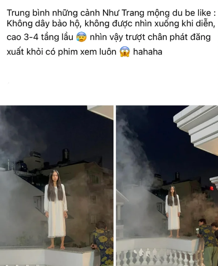 Đáng chú ý, để đảm bảo tính chân thực tuyệt đối cho góc máy, nữ diễn viên hoàn toàn không sử dụng dây bảo hộ, tạo nên một tình huống thực sự cân não trên phim trường.