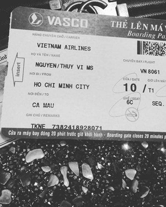 Vé máy bay hạng sang mang tên Nguyễn Thúy Vi cũng được cô nàng đăng lên mạng xã hội