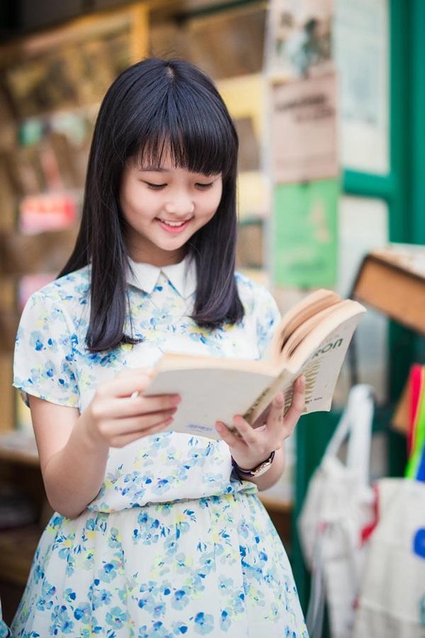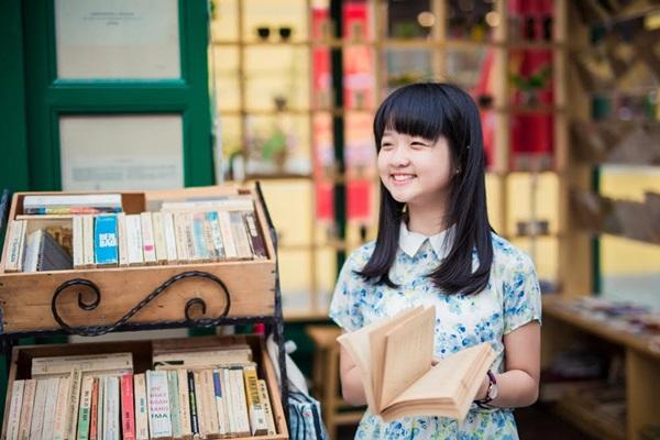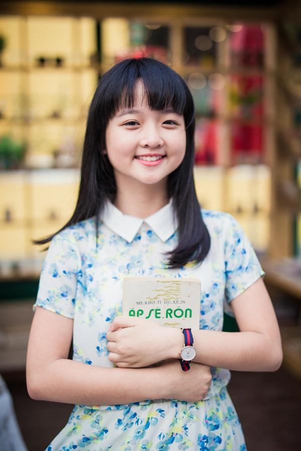 Trong bộ ảnh mới được thực hiện tại đường sách TP. HCM, nữ diễn viên nhí