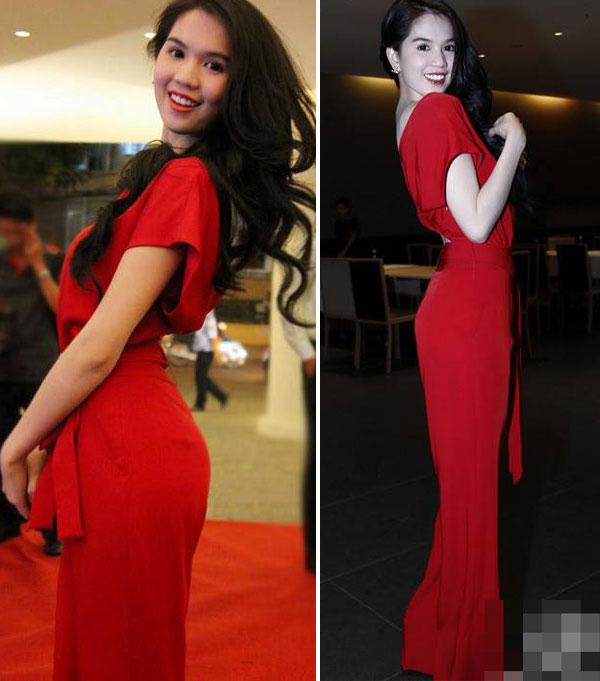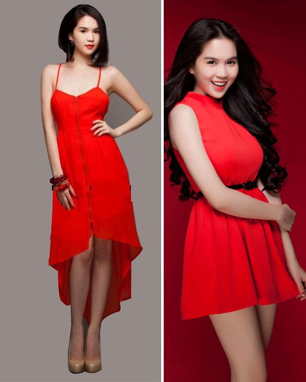 Màu đỏ luôn được xem là gam màu khơi gợi sự đam mê cháy bỏng, nổi bật và gây ấn tượng ngay từ cái nhìn đầu tiên. Bên cạnh đó, nếu những bạn gái sở hữu làn da trắng sáng mịn màng thì màu đỏ là style đỉnh cao nhất để khoe lợi thế. Chính bởi vậy, Ngọc Trinh luôn khéo léo chọn cho mình những trang phục màu đỏ với muôn vàn thiết kế để khoe dáng, khoe làn da không tỳ vết cùng đường cong chữ S trời phú.