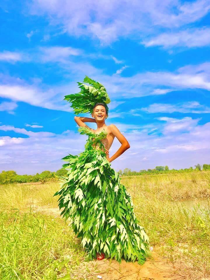 Bộ thời trang từ lá cây và cách tạo dáng cũng vô cùng đẳng cấp