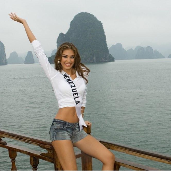 Dayana Mendoza là đại diện rất mạnh đến từ Venezuela. Trong ảnh, cô tạo dáng giữa Vịnh Hạ Long.