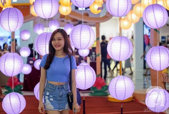 Các bạn gái có hẳn một không gian để làm duyên làm dáng với lồng đèn.
