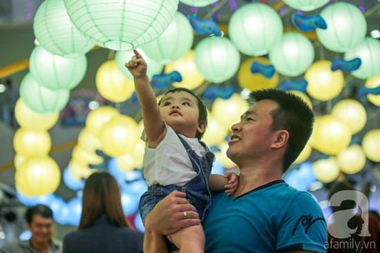 Các bé nhỏ tỏ ra rất thích thú khi ngắm nhìn lồng đèn.