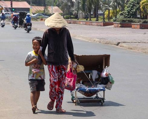 Bức ảnh với sự đối lập lớn. Hình ảnh đáng thương của một cậu bé bán bánh tráng tại cầu Đạo (Đà Lạt) khiến người ta không khỏi thương xót, chạnh lòng. Được biết, cậu bé tên là Trần Văn Giàn. Sinh ra trong một gia đình đông anh chị em, ngày nào cũng như ngày nào sáng đi học chiều về em lại tranh thủ đi bán bánh phụ giúp bố mẹ.