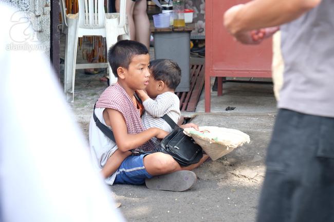 Hình ảnh người anh lớn ẵm em nhỏ xin ăn tại chùa Phổ Quang (quận Tân Bình) khiến người qua đường không khỏi xót thương.