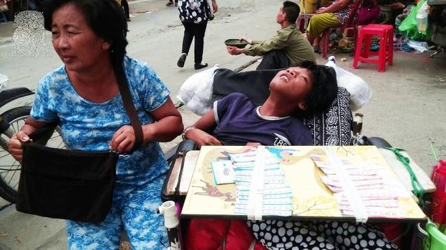 Cô bé Nguyễn Thị Ngọc Huyền khi sinh ra đã phải chịu đau đớn bởi căn bệnh bại não. Do gia đình neo người không ai chông nom, hàng ngày em vẫn ngồi xe lăn theo mẹ đi bán nhang trước đường vào chùa Hoằng Pháp (huyện Hóc Môn).