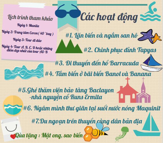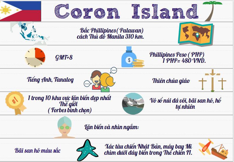 Ghé thăm Coron, bạn sẽ được trải nghiệm cảm giác nhìn ngắm thế giới thần tiên dưới nước với những rặng san hô đủ màu sắc kích cỡ cùng những đàn cá biển rực rỡ bơi lôi tung tăng quanh thân mình .
