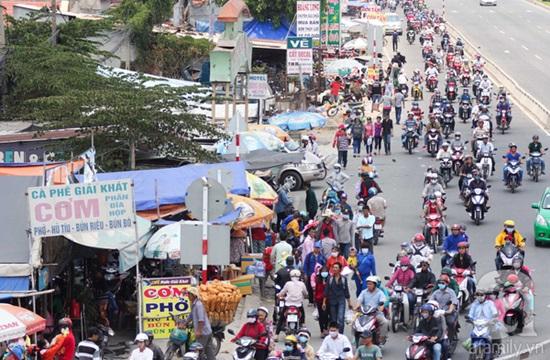 Các lối vào khu du lịch Suối Tiên "nêm" chặt người. Tuy nhiên thời tiết những ngày nghỉ lễ ở TP.HCM không quá nắng nóng nên khá thuận lợi.